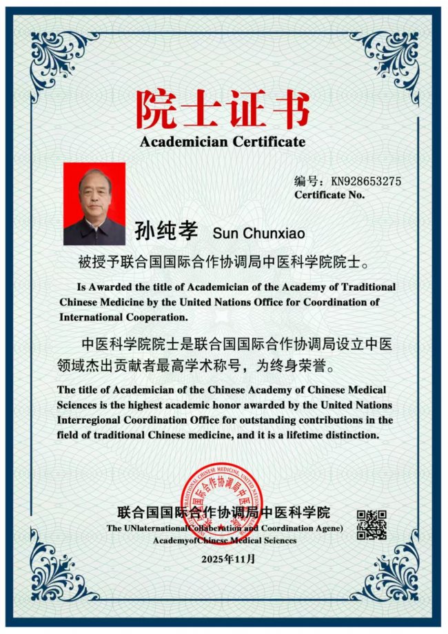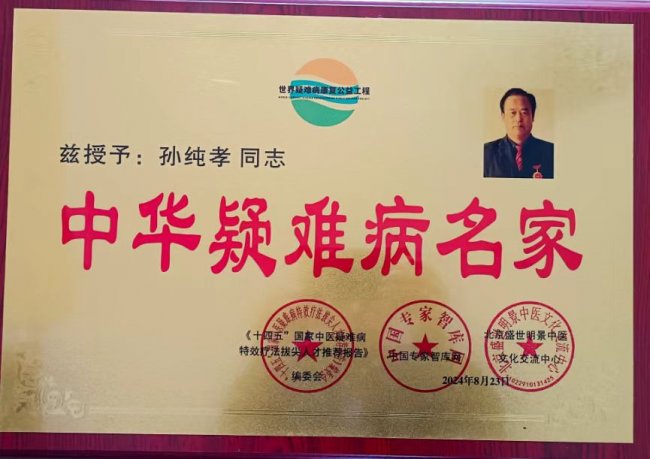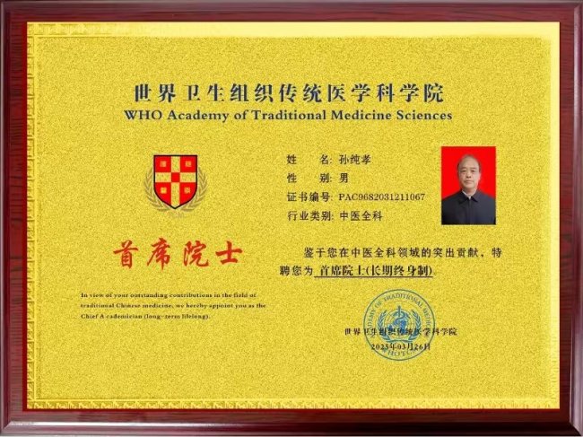 从人民日报、科技日报到中央电视台、台湾东森电视台,众多媒体的报道记录着他的坚守与成就;从香港国际科学院院士到中国医师协会“治未病”讲师,多重身份承载着行业与社会的认可。但孙纯孝始终保持着基层医者的质朴,他说:“健康事业是我终身奋斗的目标,只要能为百姓多添一份健康保障,再苦再累都值得。”